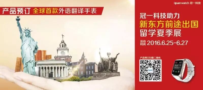 2016年6月25-26日,全球首款外語翻譯學習手表在新東方前途出國夏季留學展上亮相,前來報名的學生和家長紛紛現場體驗贊譽有加。